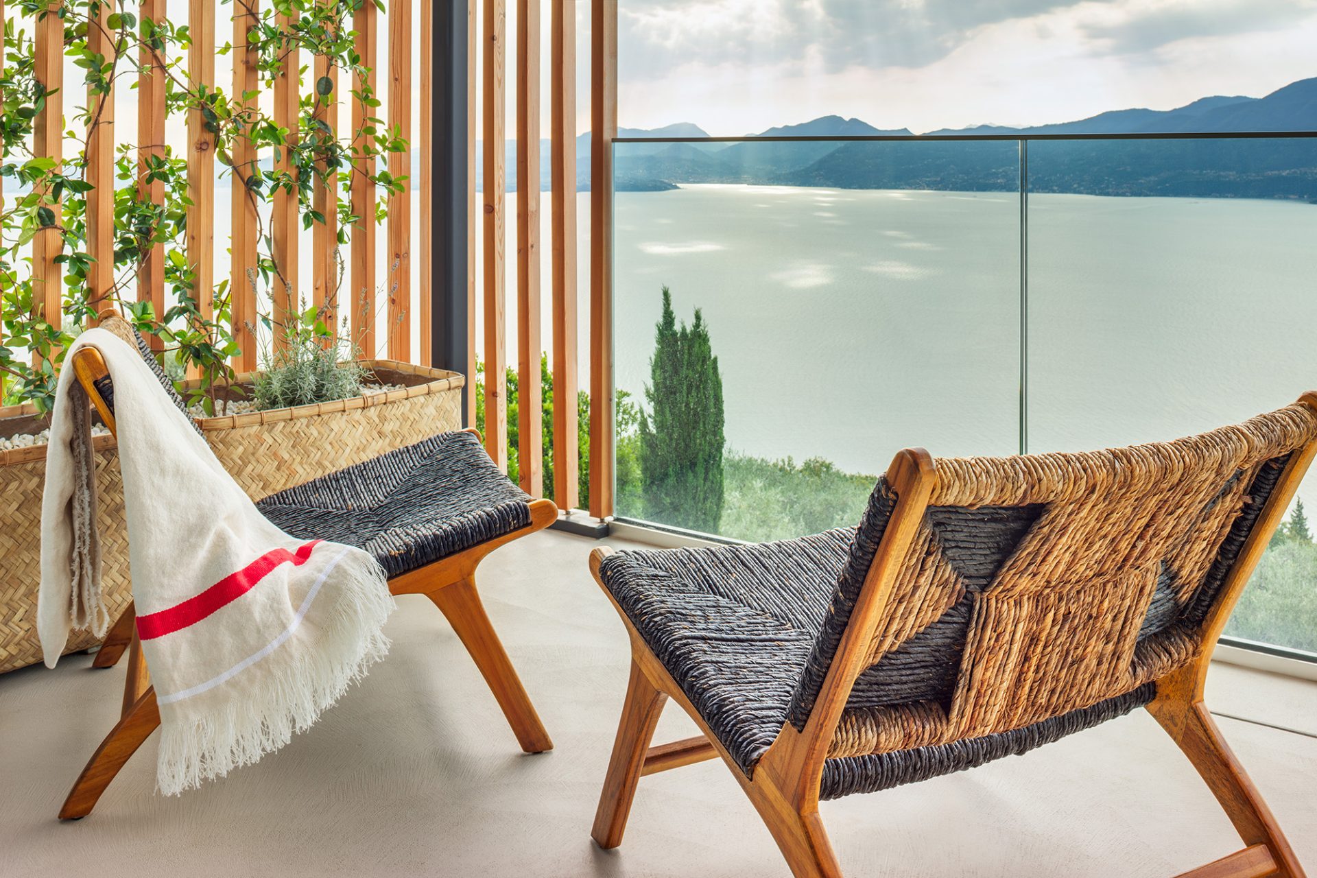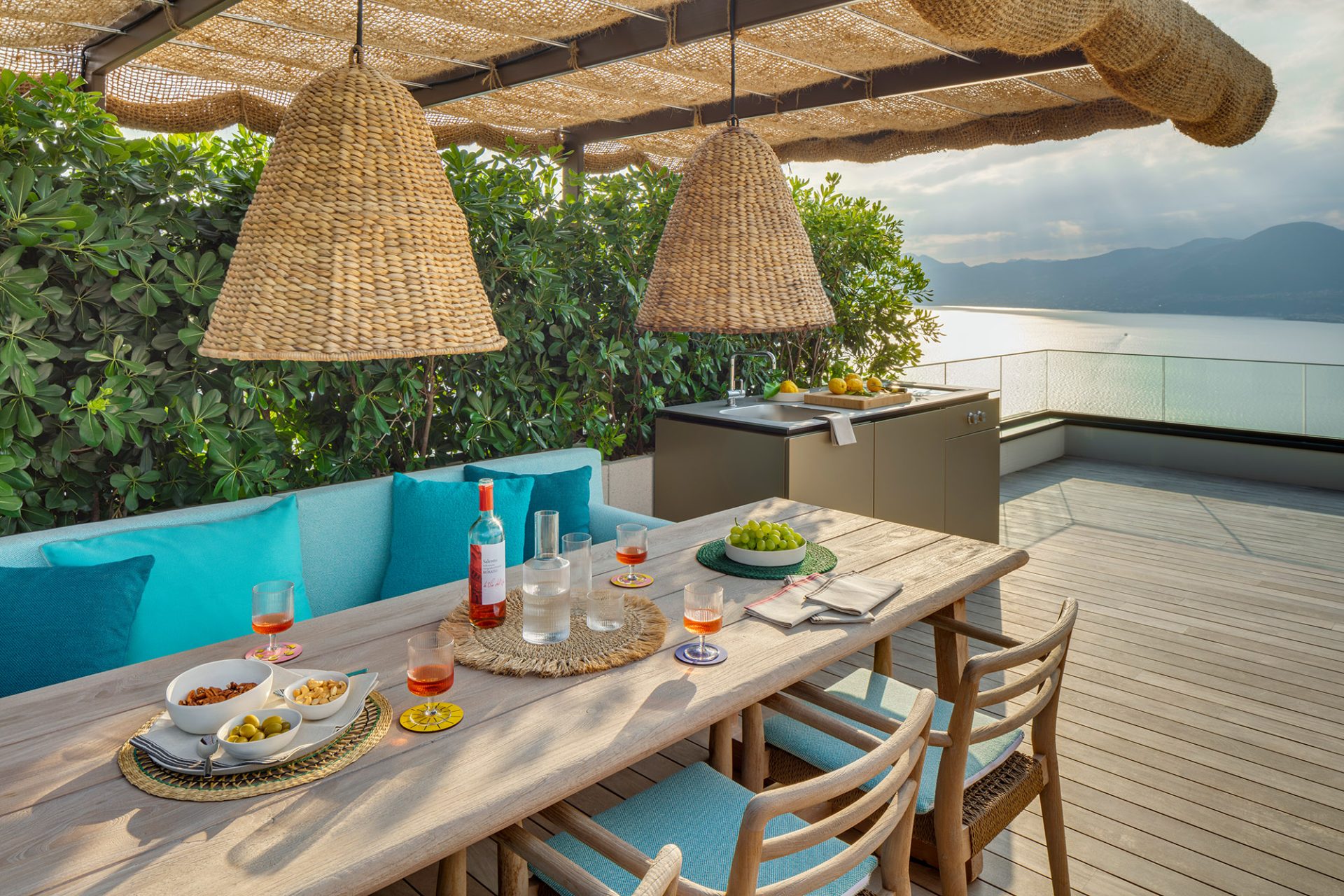 Traumhaft gelegene Wohneinheit in Hanglage über dem Gardasee. Das Apartment mit wunderbarem Blick auf den See verfügt über eine großzügige Dachterrasse mit Infinity Pool zum Entspannen.
